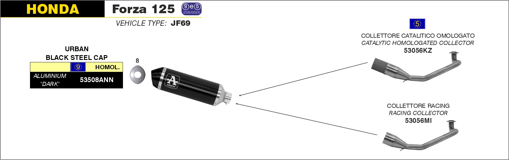 Arrow Colector racing para escape Urban Honda FORZA 125 – 2015 a 2016