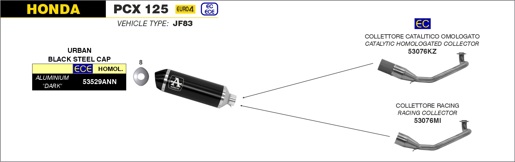 Arrow Colector racing para escape Urban Honda PCX 125 – 2018 a 2020