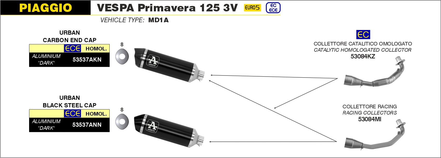 Arrow Colector racing para escape Urban Piaggio VESPA Primavera 125 3V – 2021 a 2023