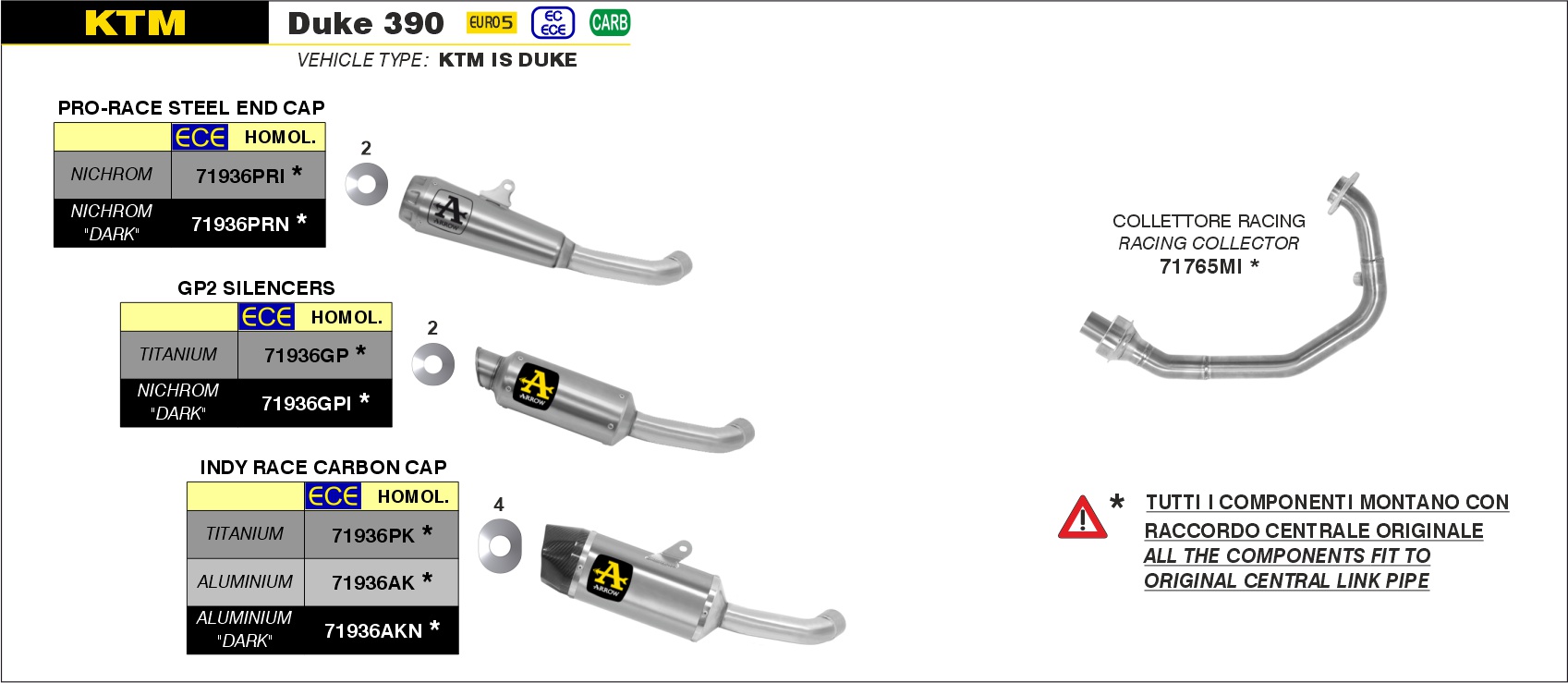 Arrow Colector racing permutable con el original KTM DUKE 390 – 2021 a 2023