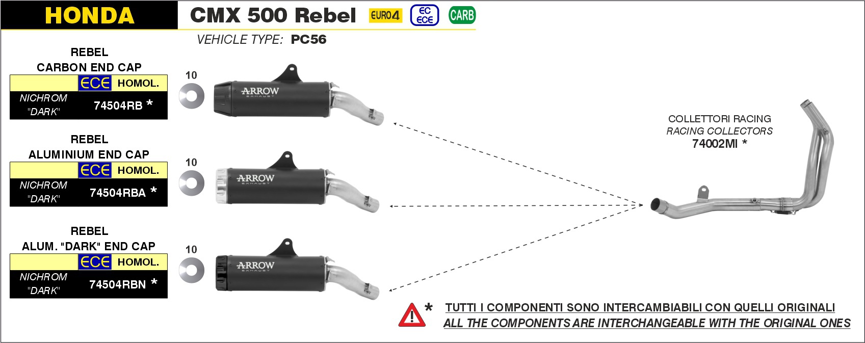 Arrow colectores racing Honda CMX 500 Rebel – 2017 a 2019