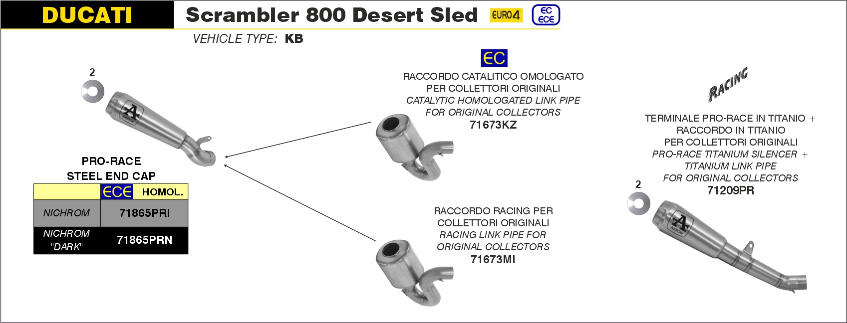 Arrow Conector catalítico para colectores originales Ducati Scrambler 800 Desert Sled – 2017 a 2020