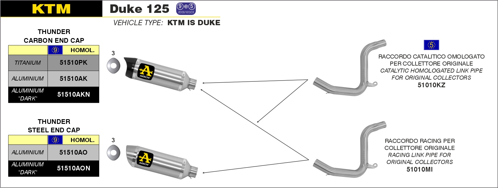 Arrow Conector para colectores originales KTM DUKE 125 – 2011 a 2016