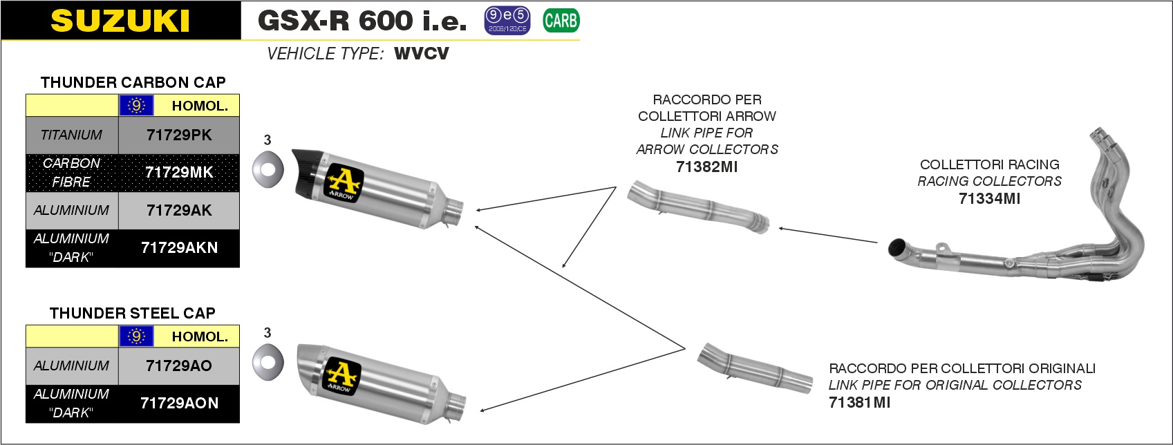 Arrow Conector para silenciosos Thunder para colectores originales Suzuki GSX-R 600 i.e. – 2008 a 2010