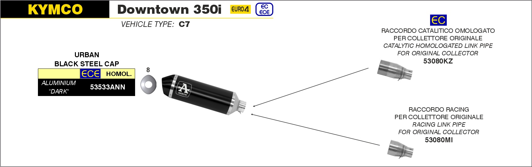 Arrow Conector racing para colectores originales Kymco DOWNTOWN 350i – 2016 a 2019