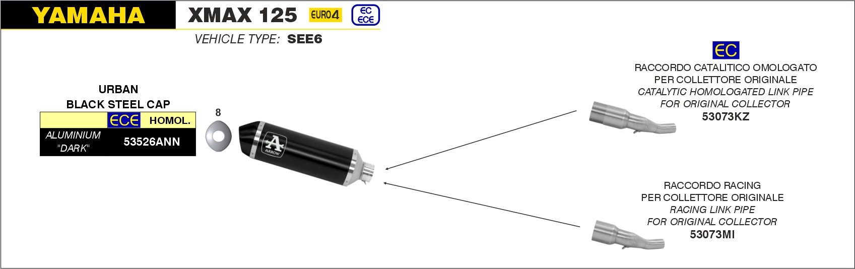 Arrow Conector racing para escape Urban Yamaha XMAX 125 – 2018 a 2020