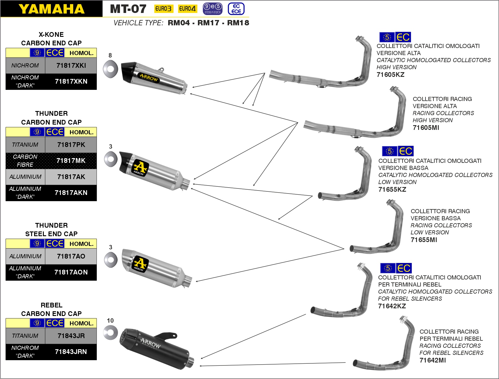 Arrow Kit colectores catalítico homologado version alta Yamaha MT-07 – 2014 a 2020