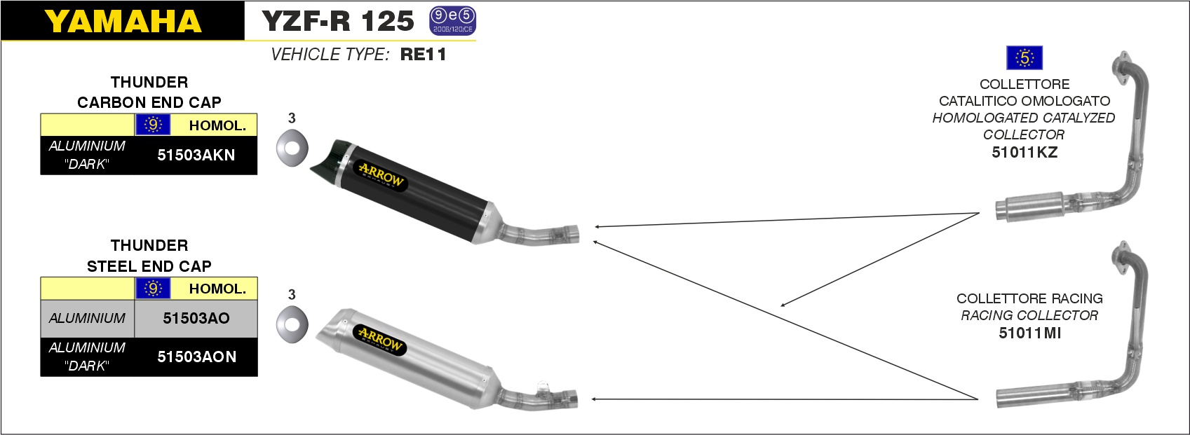 Arrow Kit colectores catalítico Yamaha YZF-R 125 – 2014 a 2016