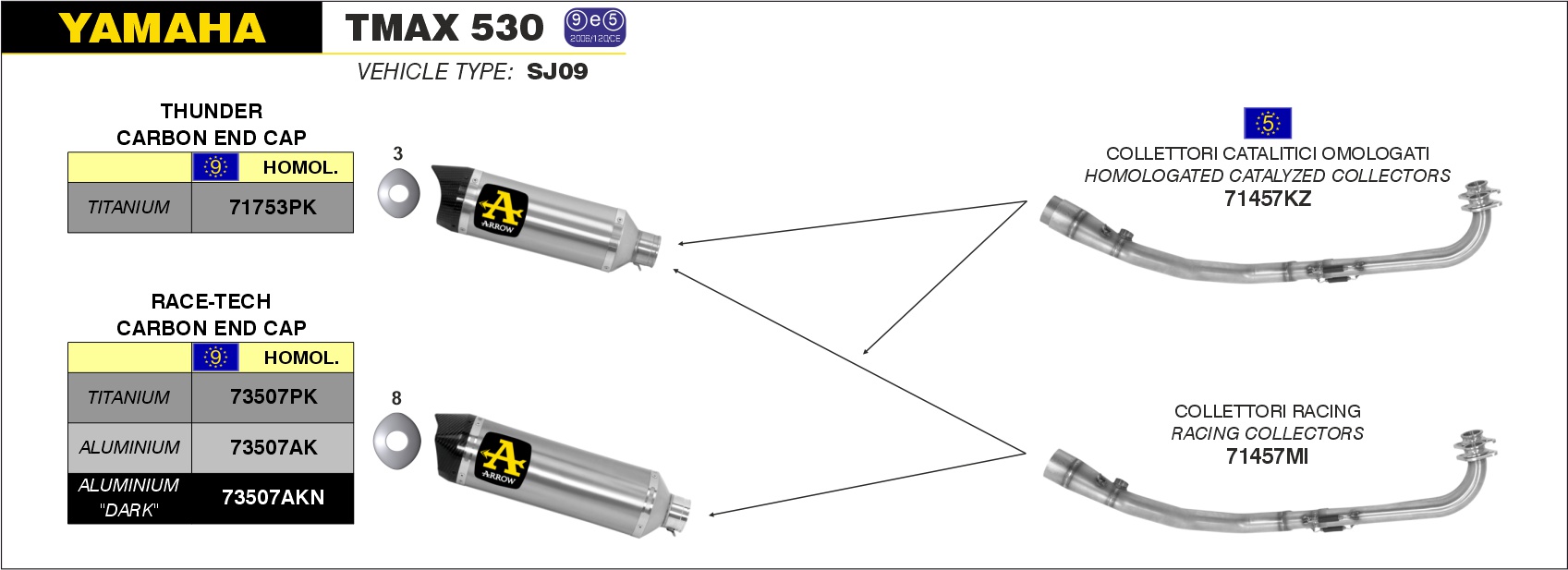 Arrow Kit colectores con convertidor catalítico Yamaha TMAX 530 – 2012 a 2016