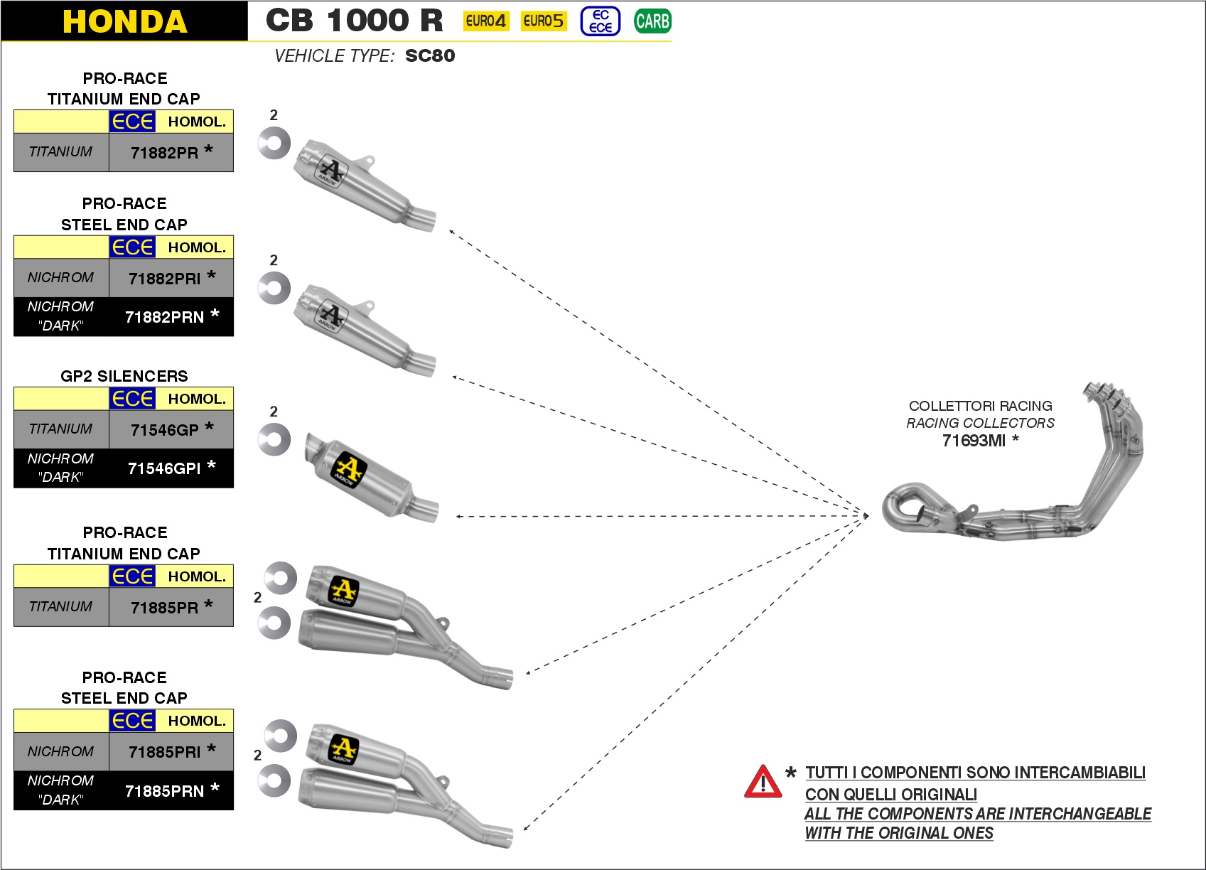 Arrow Kit de silencioso GP2 Honda CB 1000 R – 2018 a 2024