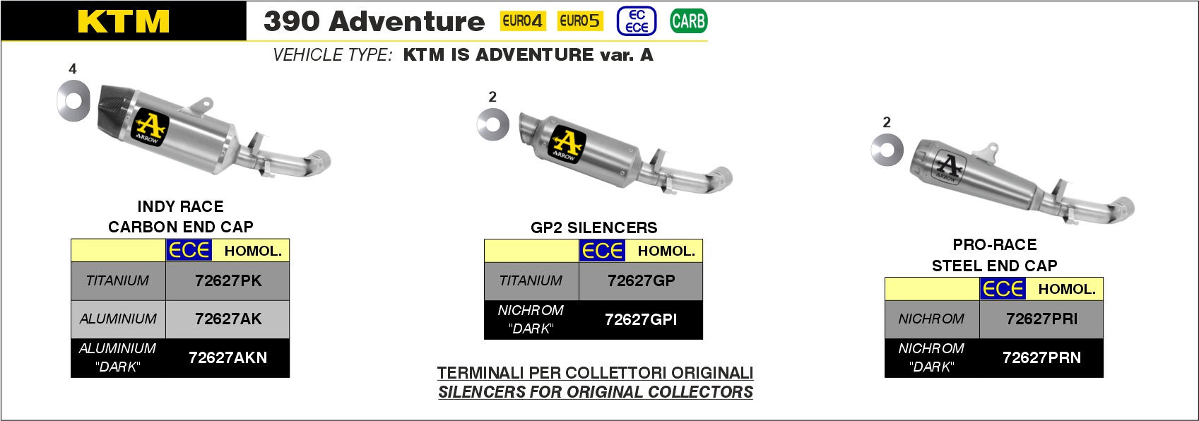 Arrow Kit de silencioso GP2 KTM 390 Adventure – 2020 a 2023