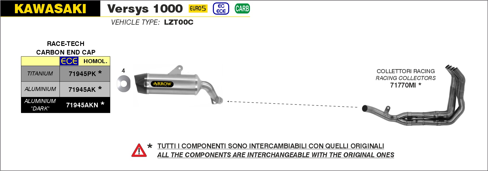 Arrow Silencioso Indy-Race en Aluminio dark» fondo en carbono» Kawasaki Versys 1000 – 2021 a 2024