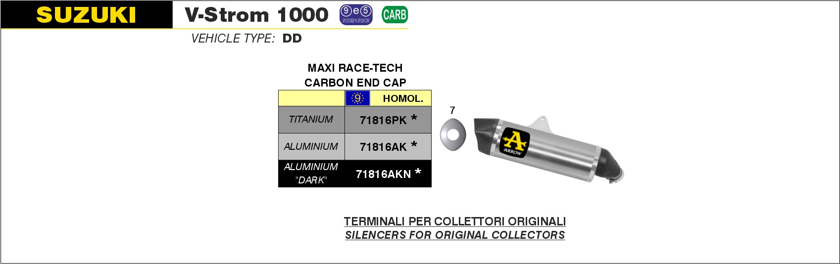 Arrow Silencioso Maxi Race-Tech de titanio fondo en carbono Suzuki V-STROM 1000 – 2014 a 2016