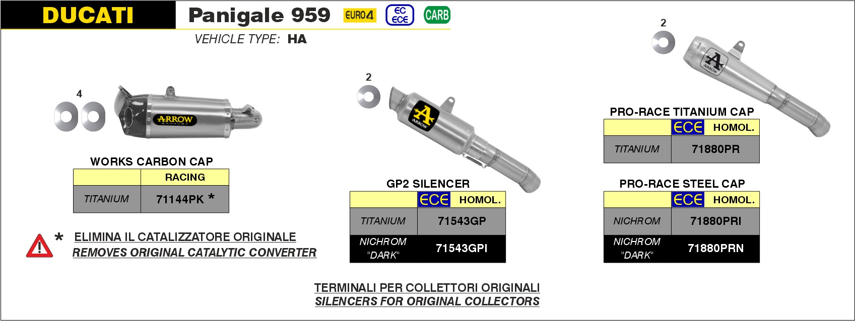 Arrow Silencioso Pro-Race Nichrom Dark»» Ducati Panigale 959 – 2016 a 2019