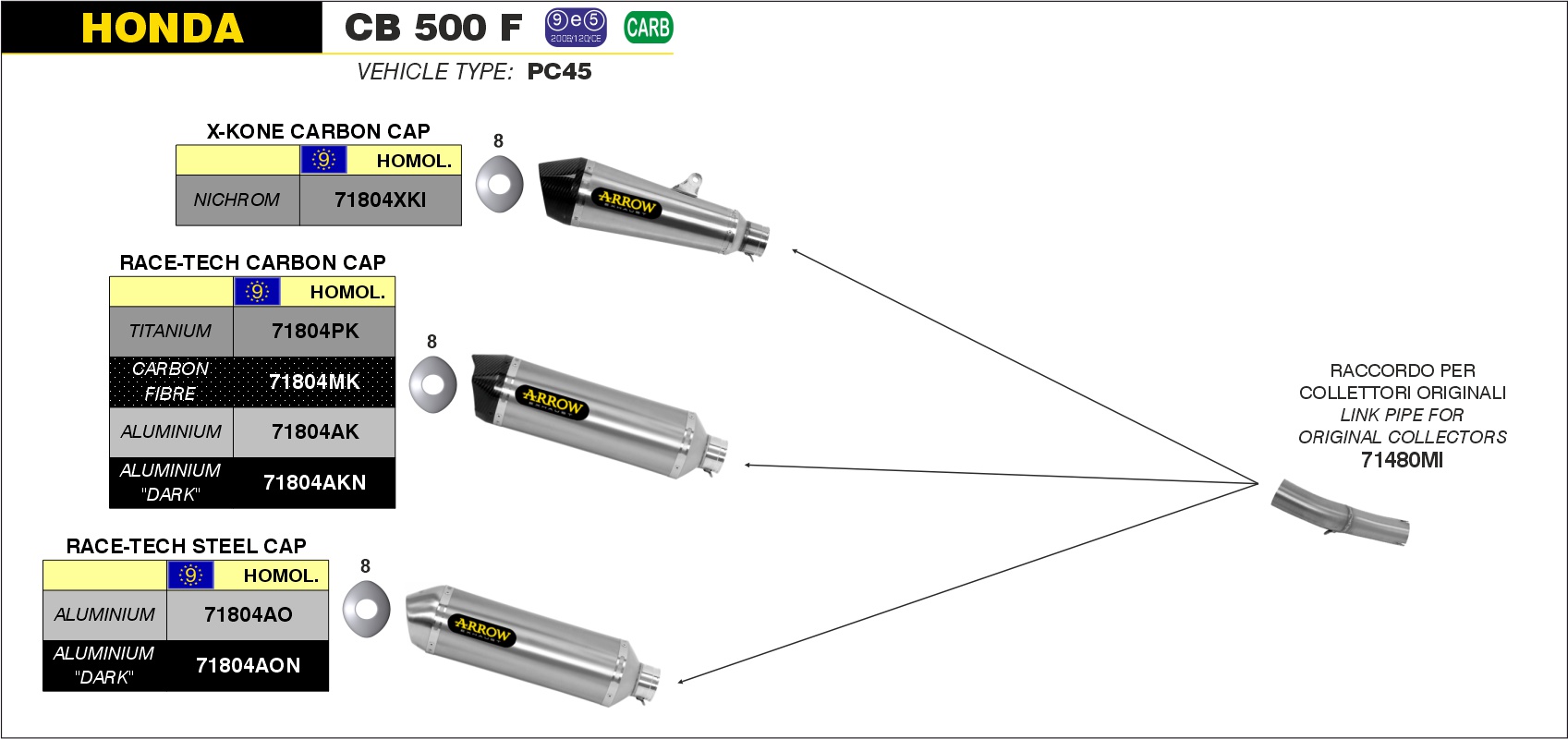 Arrow Silencioso Race-Tech de aluminio Honda CB 500 F – 2013 a 2015