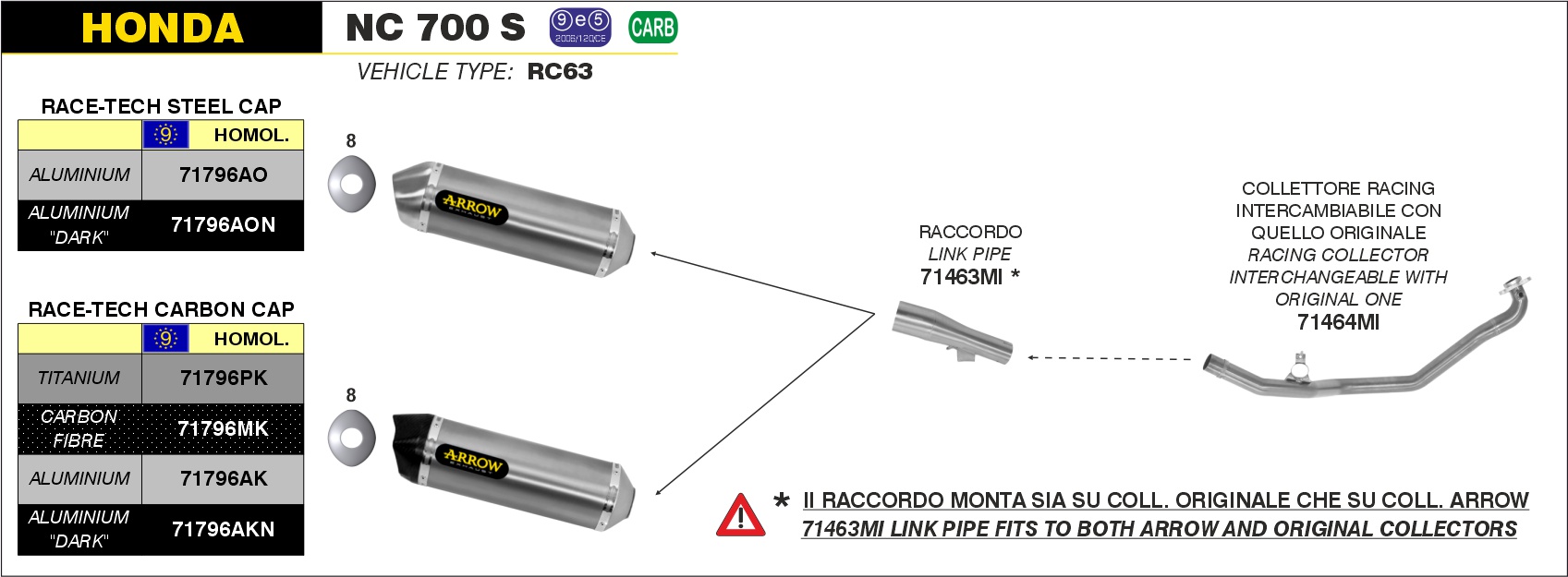 Arrow Silencioso Race-Tech de carbono fondo en carbono Honda NC 700 S – 2012 a 2014