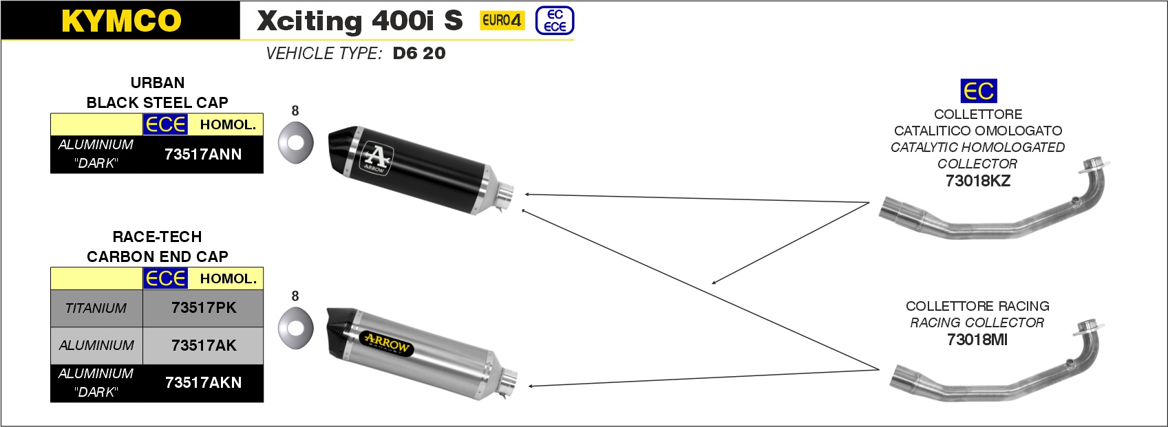 Arrow Silencioso Race-Tech de titanio fondo en carbono Kymco XCITING 400i S – 2019 a 2020