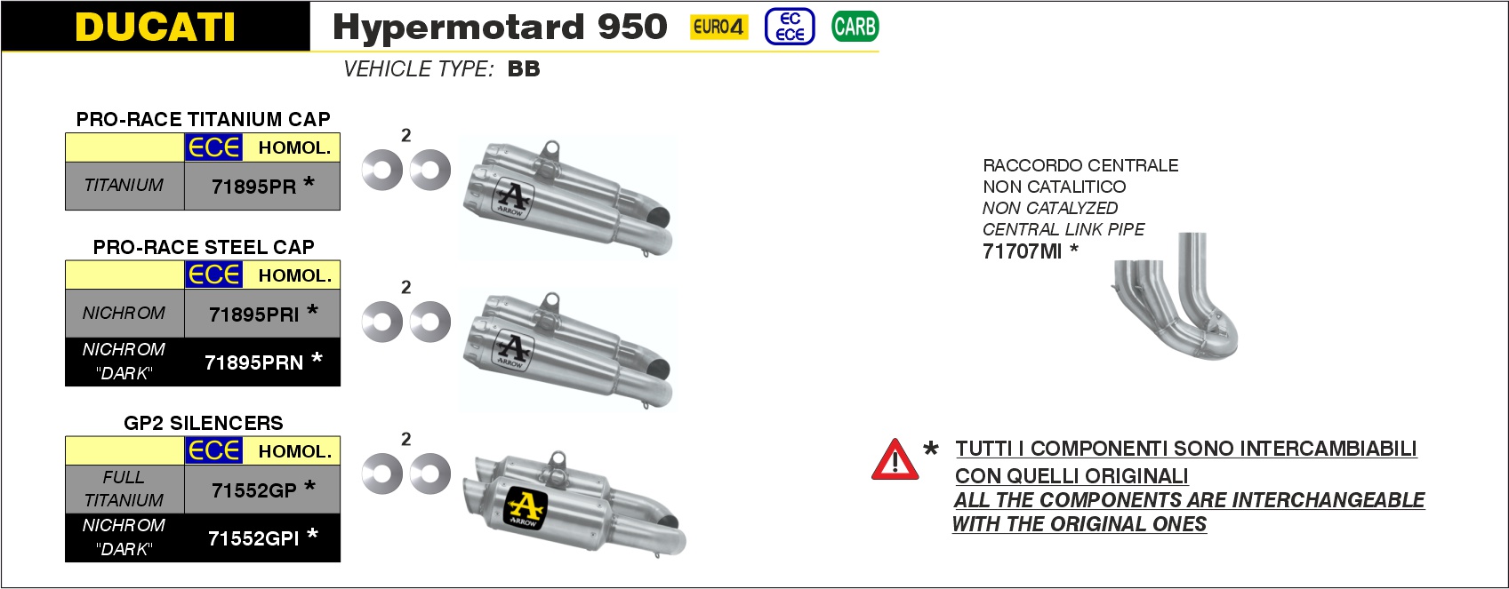 Arrow Silenciosos Pro-Race de titanio (Dcho+Izdo) Ducati Hypermotard 950 / 950 SP – 2019 a 2021