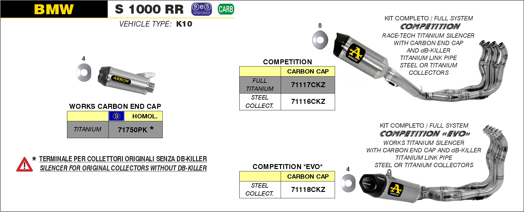 Arrow Sistema completo COMPETITION fondo en carbono BMW S 1000 RR – 2009 a 2011