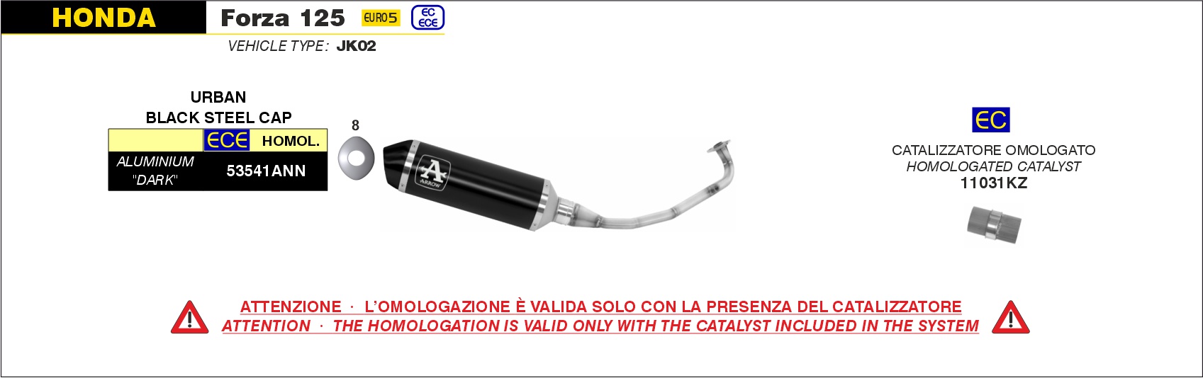 Arrow Sistema completo Urban de aluminio Dark» fondo «Dark»» Honda FORZA 125 – 2021 a 2024