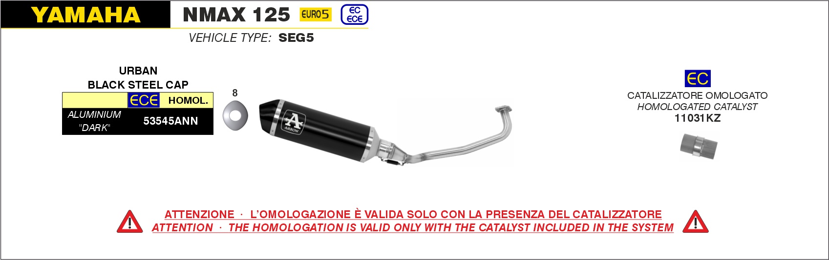 Arrow Sistema completo Urban de aluminio Dark» fondo «Dark»» Yamaha NMAX 125 – 2021 a 2024