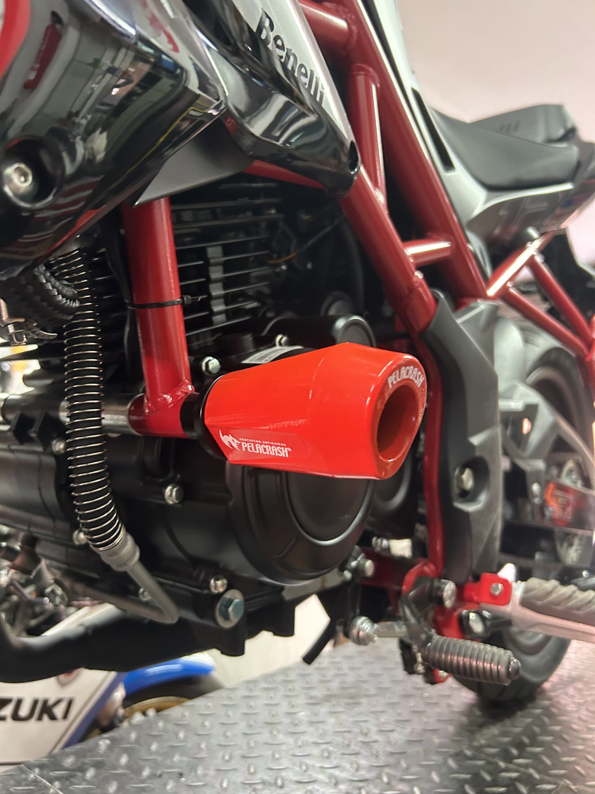 El protector de carenado para moto Pelacrash® impide que el chasis sufra irreparables desperfectos. Protege también al piloto, evitando el aprisionamiento de las piernas entre la moto y el asfalto. Pelacrash® puede instalarse en motos provistas del anclaje del chasis en el exterior o mediante un soporte especial para cada modelo, sin alterar su estética original ni efectuar ninguna modificación.