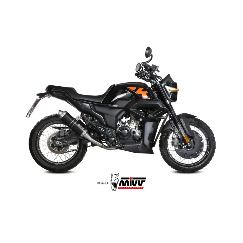 NOTICE: HOMOLOGADO SOLO CON CATALIZADOR ACC.073.A1 INSTALADO.Hecho para mejorar estética, sonido y rendimiento de la moto, el escape slip-on Mivv nace a partir de la máxima atención al diseño, con el objetivo de satisfacer a los que quieren distinguirse, también por el look de su propia moto,Fabricado utilizando las soluciones técnicas de los escapes de competición, el escape GP es un silenciador redondo corto con boquillas agrandadas,El cuerpo central está fabricado en acero inox negro con efecto "Black Moon" obtenido por un proceso de coloración especial,Esta versión da al producto un look más agresivo,