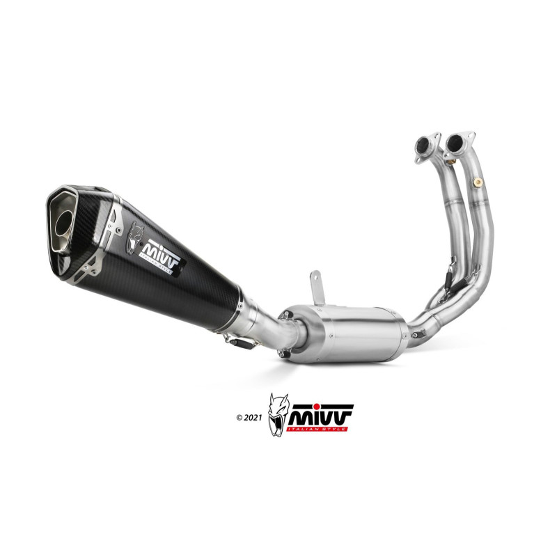 ¡AVISO! HOMOLOGADO EURO 5 SOLO CON CATALIZADOR ACC.045.A1 INSTALADO.El escape slip-on Mivv está diseñado para mejorar la estética, el sonido y el rendimiento de tu moto. Nace de una atención meticulosa al diseño, con el objetivo de satisfacer a aquellos que desean distinguirse por el aspecto de su propia moto.El escape DELTA RACE se distingue por una forma exclusiva que, a través de una transformación gradual, pasa de cónica a hexagonal. Los detalles únicos, como la tapa de carbono twill 3K, la abrazadera perimetral con doble remachado y el casquillo de entrada sólidamente fabricado para ofrecer la máxima precisión de enganche, hacen que su estilo sea incomparable.En el terminal, se encuentra el característico logo Mivv realizado mediante tecnología láser. Este escape se caracteriza por un cuerpo central de carbono con un acabado brillante, siendo el producto ideal para quienes exigen lo mejor en cuanto a estilo y tecnología.