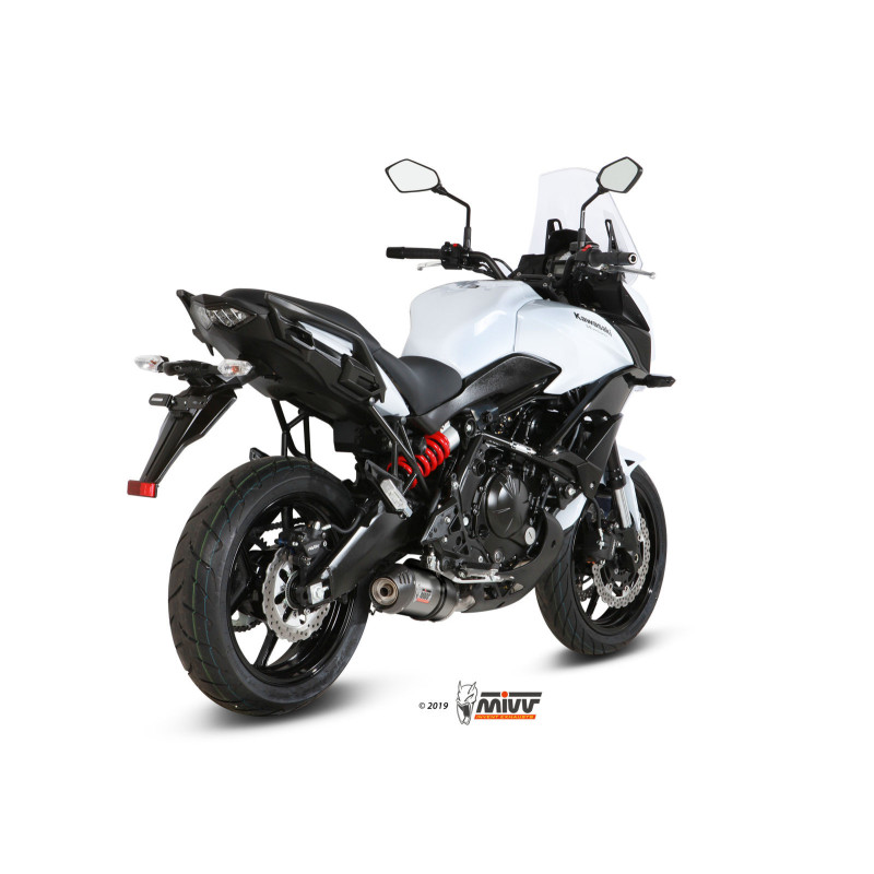 Hecho para mejorar estética, sound y rendimiento de la moto, el escape slip-on Mivv nace a partir de la máxima atención al diseño, con el objetivo de satisfacer a los que quieren distinguirse, también por el look de su propia moto.Los escapes de la línea OVAL se adaptan perfectamente a todo tipo de motos.Acabado con gran atención al detalle, es una línea que representa el mejor compromiso entre el diseño y el rendimiento.Todos los modelos disponen de dB-killer extraíble.El escape se caracteriza por un cuerpo de titanio y una tapa de carbono de alta resistencia al calor. Además tiene unas ranuras abiertas en la tapa, un detalle que da al escape un diseño más deportivo.