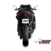 NOTICE: EURO 5 APPROVED ONLY WHEN ACC.045.A1 CATALYST IS INSTALLED. Hecho para mejorar estética sound y rendimiento de la moto el escape slip-on Mivv nace a partir de la máxima atención al diseño con el objetivo de satisfacer a los que quieren distinguirse también por el look de su propia moto.Los escapes de la línea SR-1 están dedicados principalmente a las superbike e hypernaked motocicletas. El escape SR-1 hereda toda la experiencia ganada en los varios campeonatos mundiales MotoGp – Moto2 – Moto3. El escape ha sido tratado con mucha atención a los detalles y garantiza un mejoramiento del look y de las prestaciones de la moto. Esta versión consta de un cuerpo hexagonal de titanio y de una tapa de carbono con tratamiento T-will esto es resistente a las fuertes variaciones de temperatura que son tipicas del mundo racing. A diferencia del escape de serie el SR-1 de titanio garantiza una grande reducción del peso.