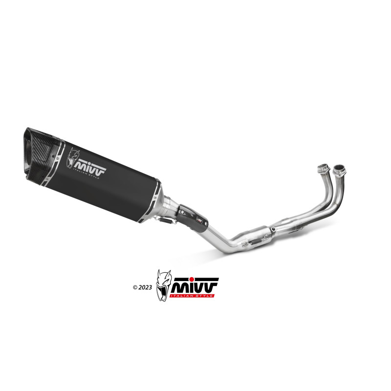 NOTICE: EURO 5 APPROVED ONLY WHEN ACC.045.A1 CATALYST IS INSTALLED.Hecho para mejorar estética, sound y rendimiento de la moto, el escape slip-on Mivv nace a partir de la máxima atención al diseño, con el objetivo de satisfacer a los que quieren distinguirse, también por el look de su propia moto.Los escapes de la línea SR-1 están dedicados principalmente a las superbike e hypernaked motocicletas.El escape SR-1 hereda toda la experiencia ganada en los varios campeonatos mundiales MotoGp – Moto2 – Moto3. El escape ha sido tratado con mucha atención a los detalles y garantiza un mejoramiento del look y de las prestaciones de la moto.Esta versión consta de un cuerpo hexagonal de titanio y de una tapa de carbono con tratamiento T-will esto es resistente a las fuertes variaciones de temperatura, que son tipicas del mundo racing. A diferencia del escape de serie, el SR-1 de titanio garantiza una grande reducción del peso.