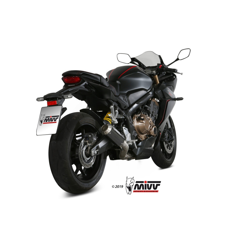 AVISO: NO HOMOLOGADO / NO APROBADOHecho para mejorar la estética, el sonido y el rendimiento de la moto, el escape slip-on Mivv nace de una atención máxima al diseño, con el objetivo de satisfacer a aquellos que desean destacarse, también por el look de su propia moto.La línea MK3, resultado de la experiencia ganada en los campeonatos mundiales de Moto3 y Moto2, es la síntesis perfecta entre la prestación y la tecnología.Con un diseño similar a los escapes fabricados para el Campeonato del Mundo Moto3 MK3, este producto cuenta con dimensiones compactas que pueden desarrollar el agradable sonido MIVV.La versión de carbono se caracteriza por un cuerpo central de carbono brillante que, junto con la rejilla de protección en el extremo de salida, le da al producto un aspecto high tech.