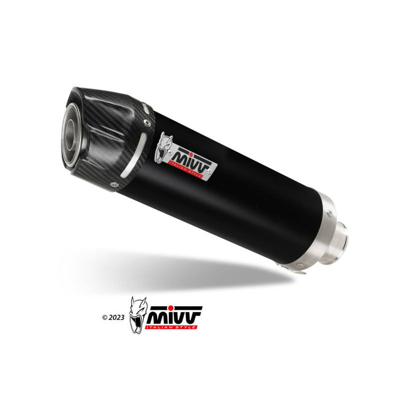 Escape Slip-On Mivv: Potencia y Estilo para tu Moto Rendimiento Excepcional para Tu Moto Descubre una mejora notable en el rendimiento de tu moto con el escape slip-on Mivv Diseñado para entusiastas que buscan potenciar su experiencia de conducción este escape combina la estética y la funcionalidad de manera excepcional Con boquillas agrandadas y un cuerpo central de acero inoxidable negro con efecto ‘Black Moon’ el Mivv ofrece un impulso significativo en la potencia de tu moto Experimenta una aceleración más rápida y un sonido impresionante que hará que tu moto destaque en la carretera Estilo Personalizado con el Look ‘Black Moon’ El escape GP de Mivv no solo potencia el rendimiento de tu moto sino que también eleva su estética a un nivel superior El cuerpo central fabricado con acero inoxidable negro y el distintivo efecto ‘Black Moon’ dan a tu moto un look más agresivo y elegante Cada curva y detalle de este escape están diseñados para destacar asegurando que tu moto no solo se destaque por su rendimiento sino también por su estilo único Haz una declaración de moda en cada viaje con el escape slip-on Mivv Calidad de Competición en tu Moto El escape slip-on Mivv no solo es una mejora estética sino que también incorpora las soluciones técnicas utilizadas en los escapes de competición Este silenciador redondo corto está diseñado para ofrecer un sonido potente y profundo que no solo mejora la experiencia de conducción sino que también refleja la calidad y la ingeniería de competición Lleva la emoción de la pista a la carretera con el escape Mivv donde cada viaje se convierte en una experiencia única