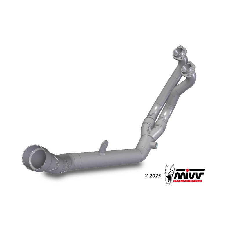 Tubo No-Kat MIVV – Rendimiento y Sonido RacingEl tubo No-Kat de MIVV es un componente opcional fabricado en acero inoxidable de alta calidad, diseñado para maximizar el rendimiento de tu moto. Compatible tanto con el silenciador original como con los silenciadores slip-on MIVV, este tubo es ideal para quienes buscan una experiencia de conducción más deportiva y emocionante.Más Potencia, Más EstiloGracias a su diseño específico, el No-Kat mejora notablemente las prestaciones del motor, especialmente cuando se combina con un escape slip-on MIVV. Además, aporta una estética más agresiva y un sonido inconfundible que eleva el carácter de tu motocicleta.ImportanteATENCIÓN: Este producto no está homologado para su uso en vías públicas según las normativas vigentes. Su uso se recomienda exclusivamente para circuito o competiciones.Características Técnicas Tubo No-Kat en acero inoxidable Compatible con escapes MIVV y originales Mejora el rendimiento del motor Estética más deportiva Sonido racing único No homologado para uso en carretera