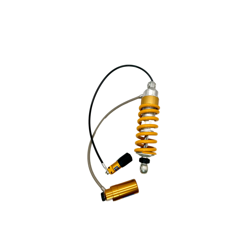 Amortiguador monotubo Öhlins STX46 con latiguillo hidráulico Este amortiguador monotubo Öhlins STX46 representa un avance significativo en rendimiento, estabilidad y durabilidad para motocicletas de alta exigencia. Fabricado con componentes mecanizados CNC de precisión y anodizado duro, garantiza una respuesta firme y un confort superior en la conducción, manteniendo la calidad premium característica de Öhlins. Características técnicas Amortiguador monotubo con pistón principal de 46 mm de diámetro para una respuesta precisa. Depósito de gas nitrógeno a alta presión montado externamente mediante latiguillo hidráulico. Control hidráulico ajustable en compresión y regulación de rebote para personalizar la dinámica. Precarga del muelle regulable mediante latiguillo hidráulico y también con ajuste mecánico mediante herramienta. Diseño con retén y vástago de baja fricción para optimizar la sensibilidad y durabilidad. Componentes mecanizados CNC con acabado anodizado duro para máxima resistencia y rendimiento. Diseñado para mantenimiento periódico y servicio técnico especializado. Ajuste y comportamiento dinámico El amortiguador cuenta con regulación independiente de rebote y compresión que permite adaptar el comportamiento dinámico a diferentes estilos de conducción y condiciones de ruta. La precarga del muelle, ajustable hidráulicamente, posibilita modificar la postura y respuesta del conjunto de suspensión para optimizar la estabilidad y el confort. Su sistema con gas nitrógeno a alta presión y latiguillo hidráulico garantiza una gestión térmica eficiente y un control hidráulico preciso en todas las condiciones de uso. Nota: Se recomienda la instalación por profesional especializado. Producto totalmente revisable y reparable.