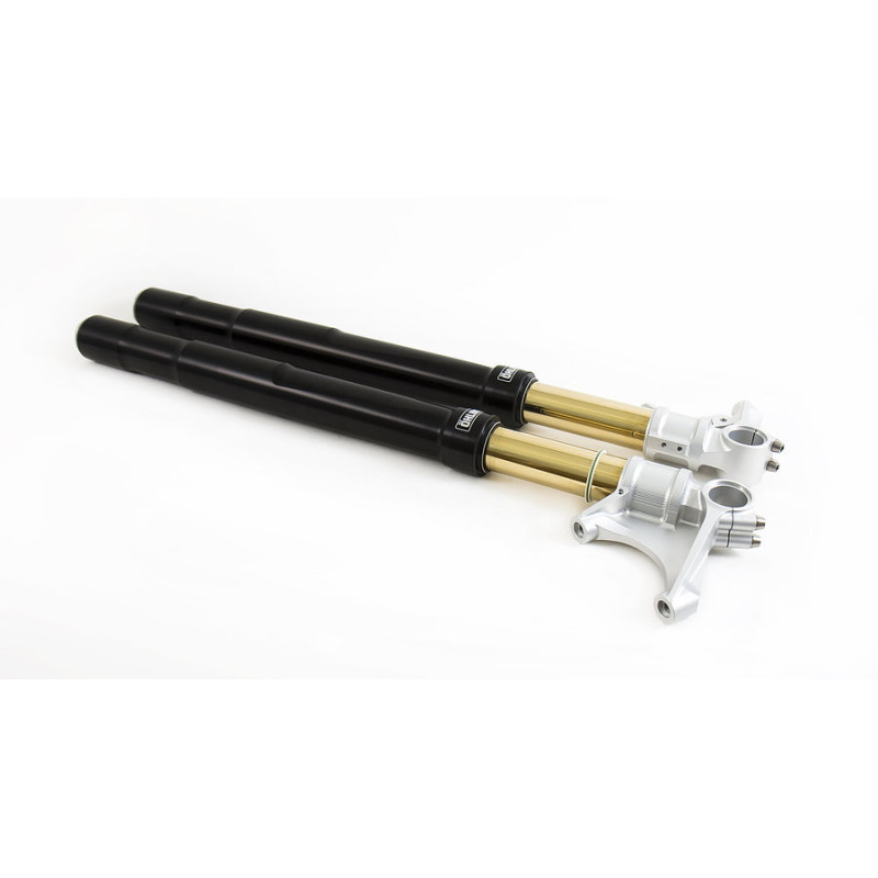 Con la tecnología probada en competición de nuestro kit de cartuchos de horquilla delantera de 30 mm, el sistema hidráulico de compresión y extensión están totalmente separados, una barra es de compresión y la otra de extensión. Además de una mejora del comportamiento dinámico, podrás acceder a la regulación hidráulica en la parte superior de cada barra. La nueva horquilla delantera mejora las sensaciones del piloto, la frenada y el control de la moto en general. Sin mencionar el estilo exquisito: la FGRT 200 es un diseño perfecto en términos de rendimiento y apariencia.