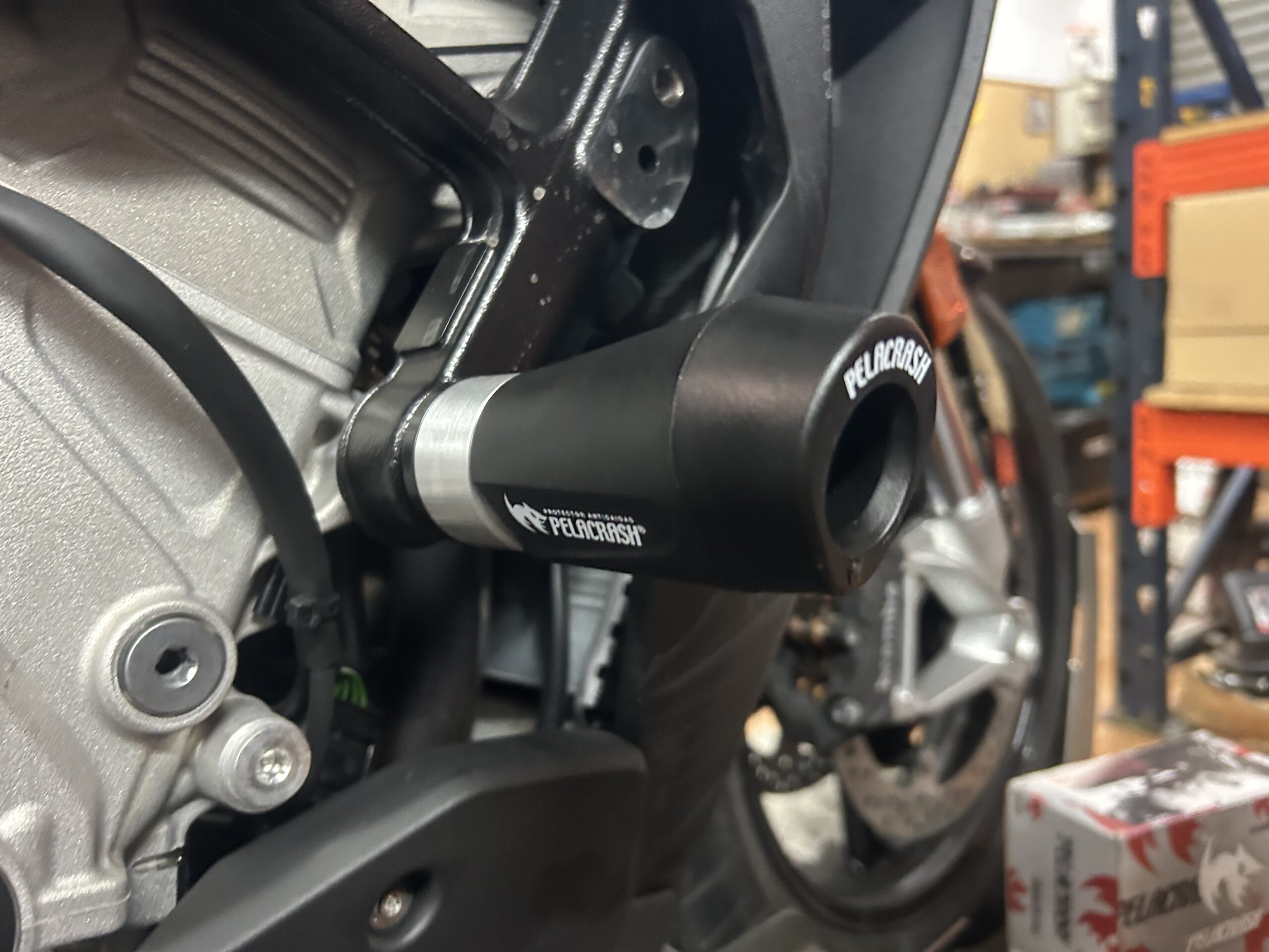El protector  de carenado para moto Pelacrash® impide que el chasis sufra irreparables desperfectos. Protege también al piloto, evitando el aprisionamiento de las piernas entre la moto y el asfalto.   Pelacrash® puede instalarse en motos provistas del anclaje del chasis en el exterior o mediante un soporte especial para cada modelo, sin alterar su estética original ni efectuar ninguna modificación.