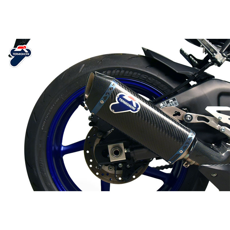 Silencioso Termignoni Force para Yamaha YZF R1 15-18 – Y106080CFTCódigo producto: Y106080CFTHOMOLOGADODiseño: ForceMaterial: Titanio CuNbCubierta: CarbonoDESCRIPCIÓNFuerza silenciadorEl silenciador FORCE para Yamaha YZF R1 (2015-2018) está hecho de carbono y titanio cuNb , la misma aleación utilizado por el Departamento Termignoni Corse para construir sistemas de escape de la competencia.El cuNb es una aleación de titanio especial que tiene excelente conformabilidad a temperatura ambiente alta resistencia mecánica incluso después de la 600°C y resistir la oxidación por encima de 800°C .Esto permite que el peso se reduzca significativamente , al tiempo que garantiza un alto nivel de rendimiento y durabilidad del escape, muy superior a un sistema hecho de una aleación comercial de titanio.El silenciador, intercambiable con el original, está disponible con funda y almohadilla de carbono, y está homologado para uso en carretera.Asociado con el cuerpo final sin convertidor catalítico (Código Y106CF000T ) ofrece una mejor entrega a todas las velocidades y un aumento de potencia de 4 hp a 13.800 rpm. Titanio – Carbono