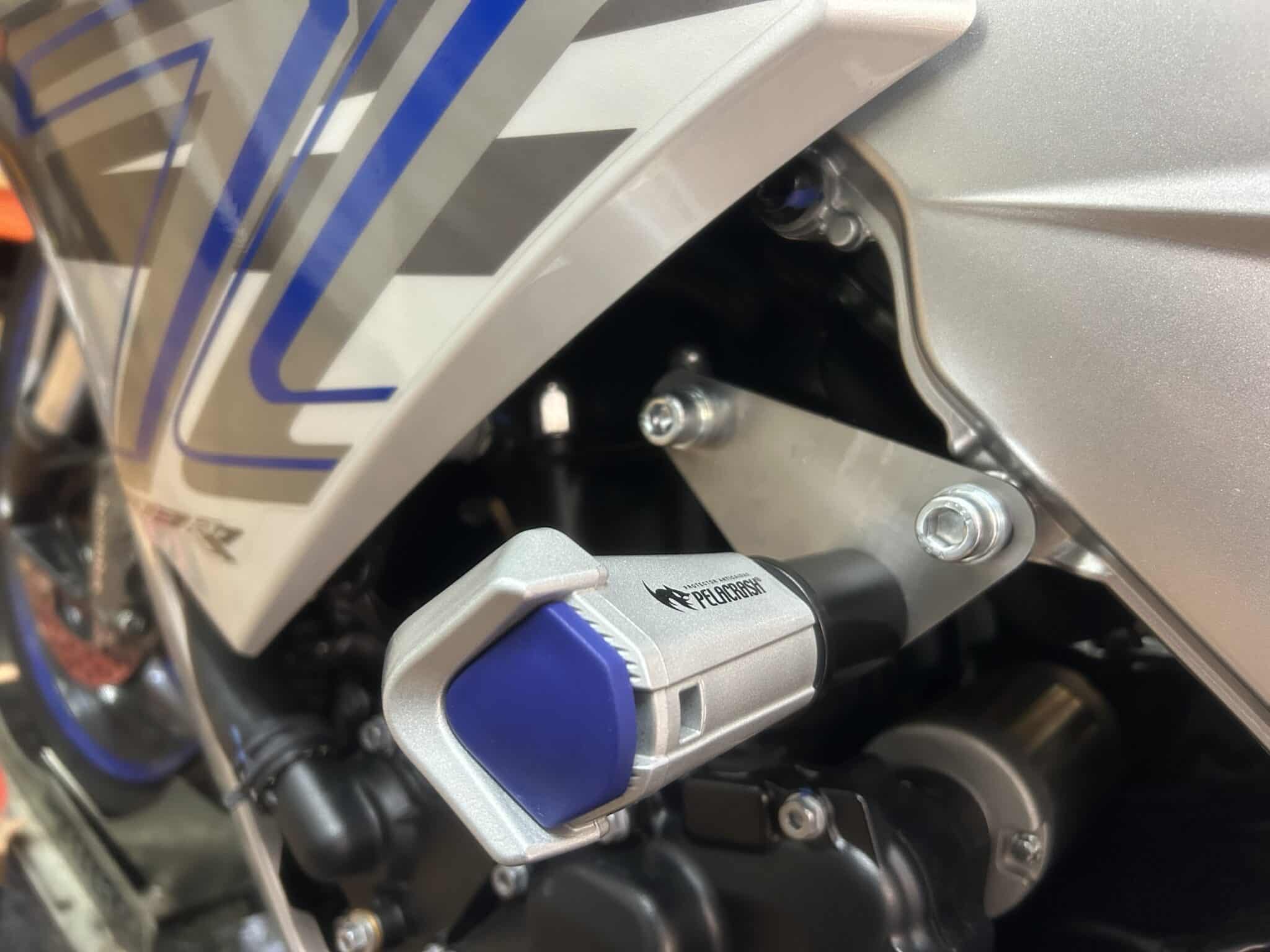 El protector  de carenado para moto Pelacrash® impide que el chasis sufra irreparables desperfectos. Protege también al piloto, evitando el aprisionamiento de las piernas entre la moto y el asfalto.   Pelacrash® puede instalarse en motos provistas del anclaje del chasis en el exterior o mediante un soporte especial para cada modelo, sin alterar su estética original ni efectuar ninguna modificación.